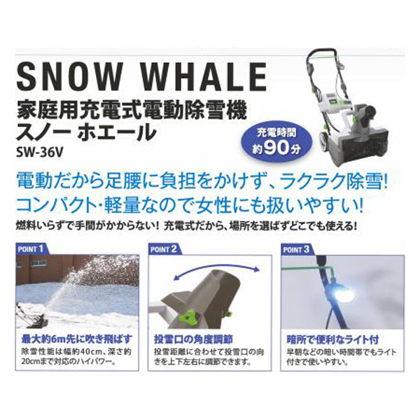 充電式電動除雪機スノーホエール[SW-36V][EIG]