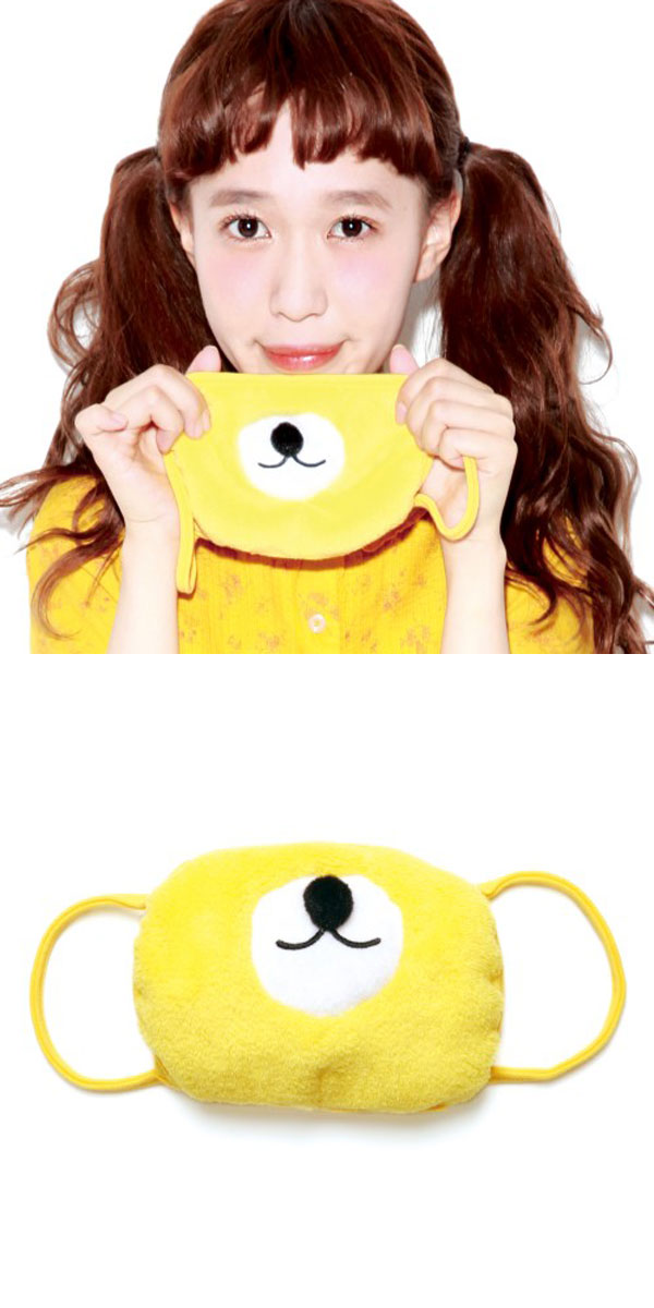 大人気クママスクが豊富なカラーで新登場。こちらは、表地にぬいぐるみ素材を使用し、鮮やかなイエローがインパクト大。マスクとしての機能も果たしてくれるので、花粉、飛沫ウイルス対策にもお使いいただけます。ファッションのポイントに取り入れれば目立つこと間違いなし。当て布(ガーゼ)が二枚、付属します。
