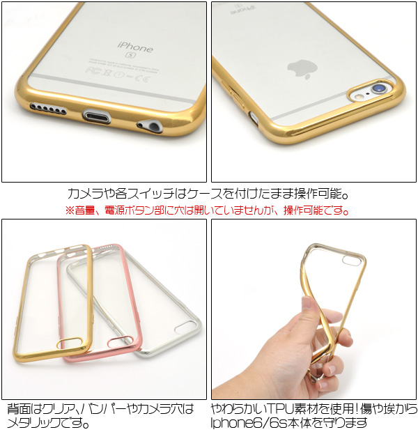 スマホケース iPhone6 iPhone6S メタリックバンパー風クリアケース TPU素材 アイフォン6 6S用 保護カバー シンプル 透明ケース