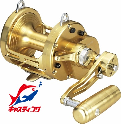 キハダ・メジ・カツオ・カンパチ・ヒラマサ・イシナギ・カンナギ等、コマセや泳がせ釣りのターゲットとしては最大級のモンスターフィッシュを獲るために必要なタフボディ、スムーズなレバードラグ、巻上げしやすいハンドル&ノブ形状を備えたスタンディングファイト用リール。超精密ワンピースマシンカットによる高い剛性を備えたボディに、ターゲットに応じて2スピード切り替えが可能なレバードラグを搭載。ドラグ素材には滑らかさと耐久性を兼備した防水UTD(アルティメットトーナメントドラグ)を採用。巨魚とのファイトにおいて最もバラシが発生しやすいファーストランにも柔軟に対処できる。海上で映える鮮やかなゴールドボディは、大物手巻き派アングラー諸氏の夢をかなえるための強力な武器となる。