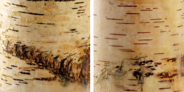 ※本物の樺材を使用し、さらにその上からロウをコーティングしているため白樺の樹皮の色味や黒い木目、コルク層のにじみ、また、ロウのコーティングの厚さに個体差がでる場合がございます。あらかじめご了承ください。