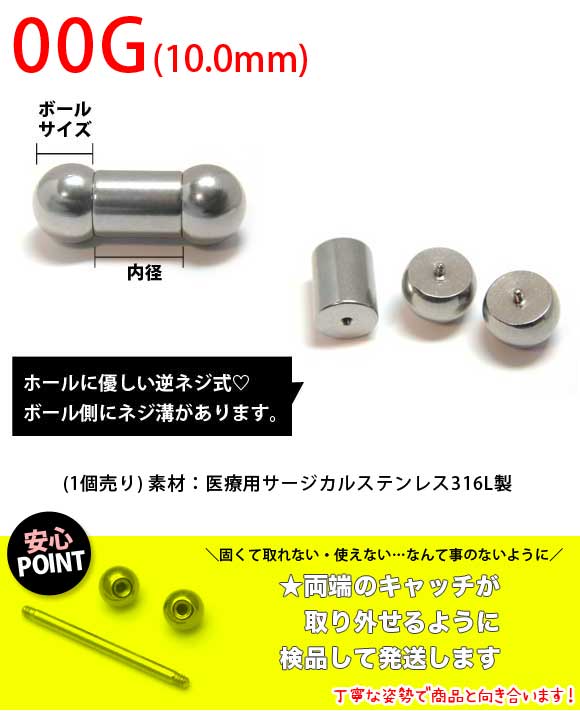 00ゲージ ピアス ファーストピアス 軟骨ピアス 金属アレルギー対応 つけっぱなし シンプル 舌ピアス センタータン メンズ レディース