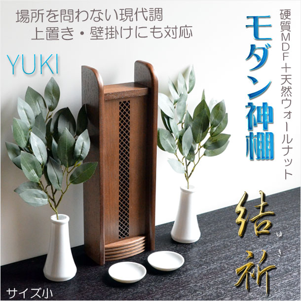神棚【モダン神棚:結祈(ゆき)硬質MDF+天然ウォールナット サイズ小】神道 神札 お札