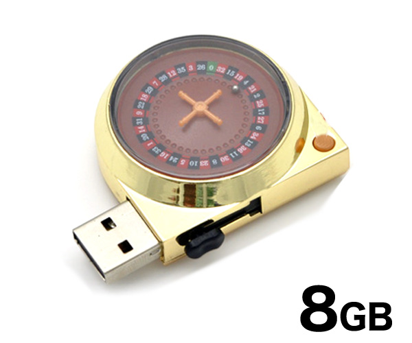 ボタンを押すと本当に回る!ルーレットタイプのUSBメモリです!USBに接続した状態でボタンを押すと、ルーレットがくるくる回ります! 文字盤には数字が書かれているので本物のルーレットと同じように遊ぶことが出来ます!メモリ部分はスライド式で収納可能なので、傷や埃を防ぐことが出来ます! 画像や音楽などたっぷり入る大容量8GB!また高速USB2.0転送です。