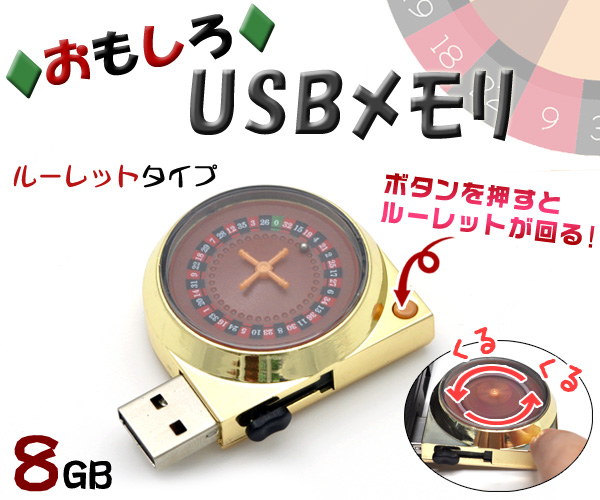 8GB おもしろUSBメモリ ルーレットタイプ ボタンを押すとくるくる動くユニークデザイン 大容量8GB 高速USB2.0転送