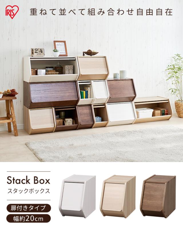 【お得2個セット】スタックボックス 扉付き 幅20cm 収納 収納ボックス 家具 ラック 重ねる 木目調 おしゃれ STB-200D アイリスオーヤマ 【int】