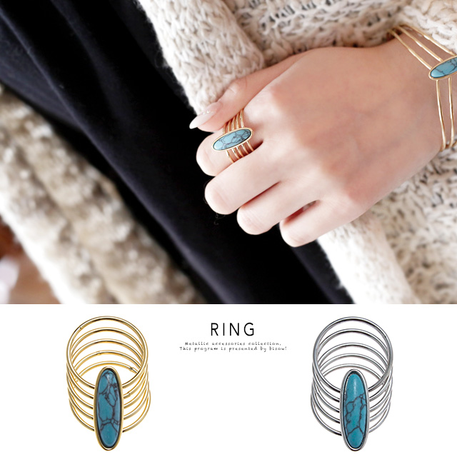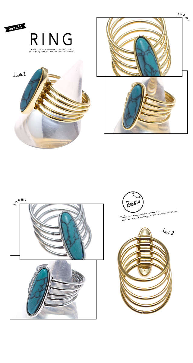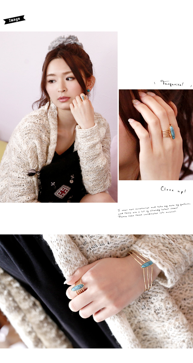 【ターコイズ風の5連リング】指輪/ターコイズ風/ボヘミアン/エスニック/ゴールド/シルバー/金/銀/アクセサリー