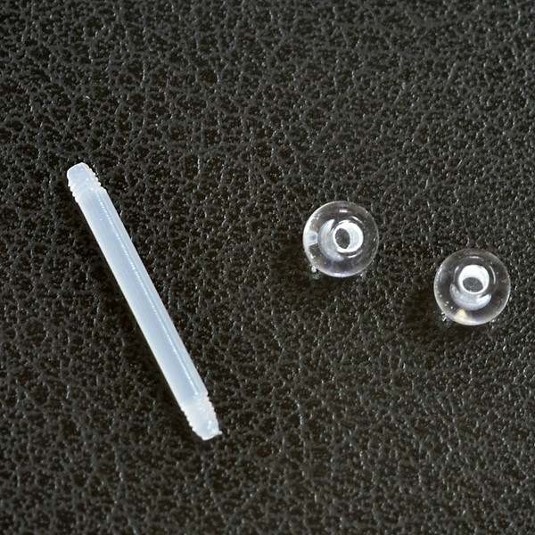 使用したい長さに本体の先端を斜めに切り、ボールにねじ込めば装着できる優れものの透明ピアスです♪