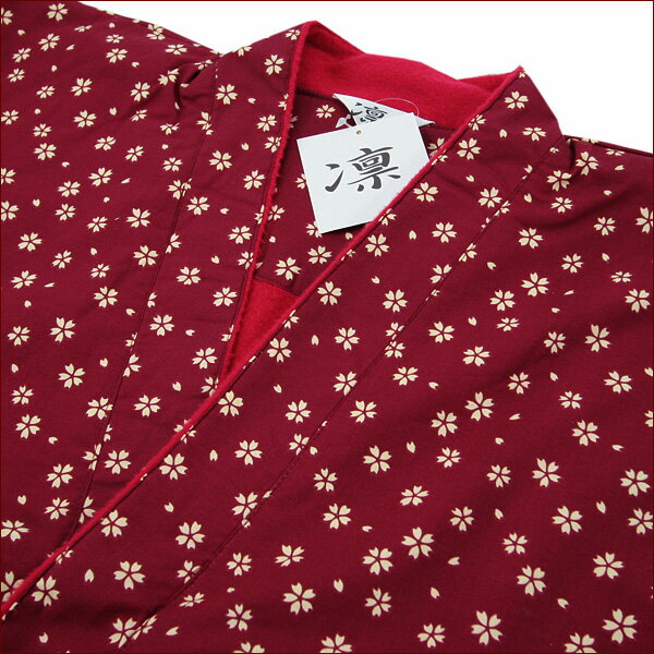 作務衣 婦人 レディース 女性 冬用 中綿 入り あったか さむえ さむい フリース裏 桜吹雪柄 さくらふぶきがら ワイン/レディース ぽかぽか 制服