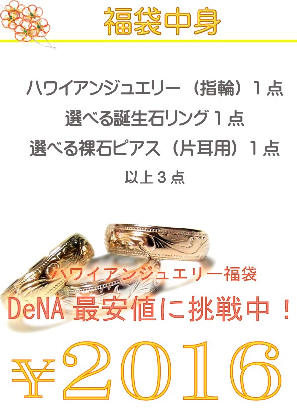 2016fuku 福袋 ハワイアンジュエリー リング 誕生石 指輪 裸石1粒ピアス ステンレススチール レディース