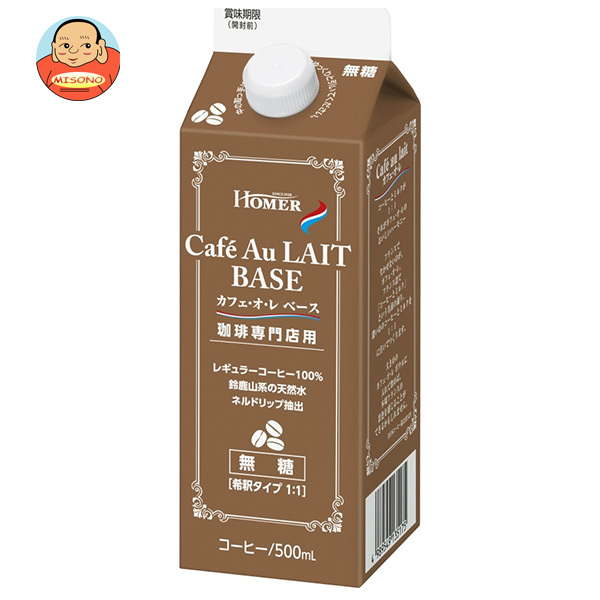 ホーマー 珈琲専門店用 カフェ・オ・レ ベース(無糖) 500ml紙パック×12本入| 送料無料 珈琲 カフェオレ 無糖 紙パック コーヒー