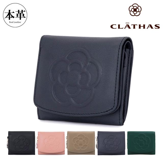 【レビュー投稿で+5%還元】クレイサス 二つ折り財布 ミニ財布 ワッフル レディース 185435 CLATHAS 本革 レザー 型押し エンボス カメリア 開運 一粒万倍日 クリスマス_mp クリスマス_wp
