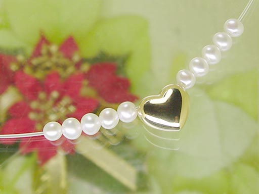 高級感たっぷりの「エンジェルハートネックレス」ハートモチーフにサイドに計10個のあこや本真珠が羽根を広げた天使のように可愛く胸元のハートを印象的に見せてくれます。