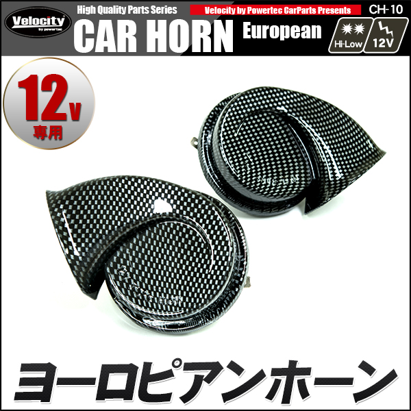 ホーン クラクション 電子ホーン 12V ヨーロピアンホーン カーボン調 爆音【配送種別:B】