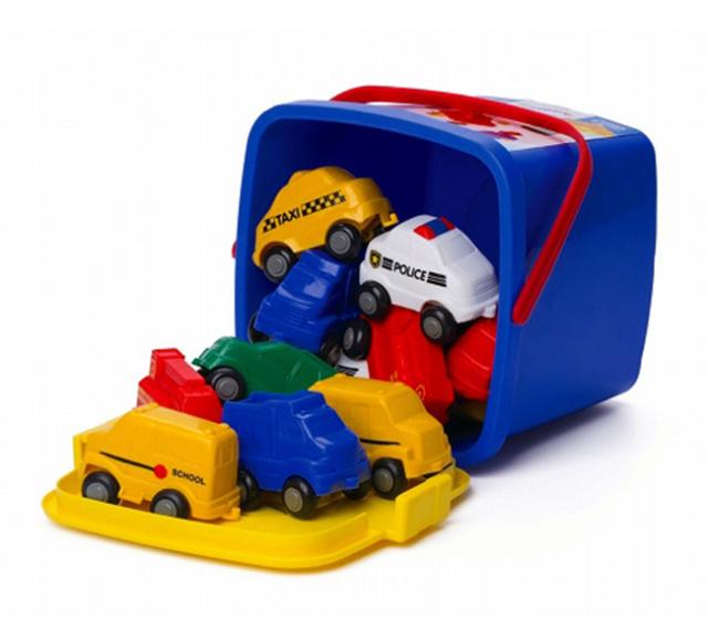 VIKINGTOYS バイキングトイズ チュビーズ タウンカーバケツセット15個入 156030(プラスチック おもちゃ 車 パトカー タクシー 消防車 スクールバス おもちゃ箱 セット 男の子 ベビー キッズ 出産祝い 誕生日 クリスマス プレゼント ギフト 人気)