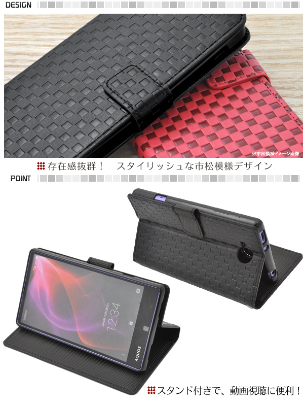 AQUOS ZETA SH-01H AQUOS Xx2 502SH SoftBank 用 市松模様デザインスタンドケース アクオスフォン ゼータ SH-01H 502SH用手帳型