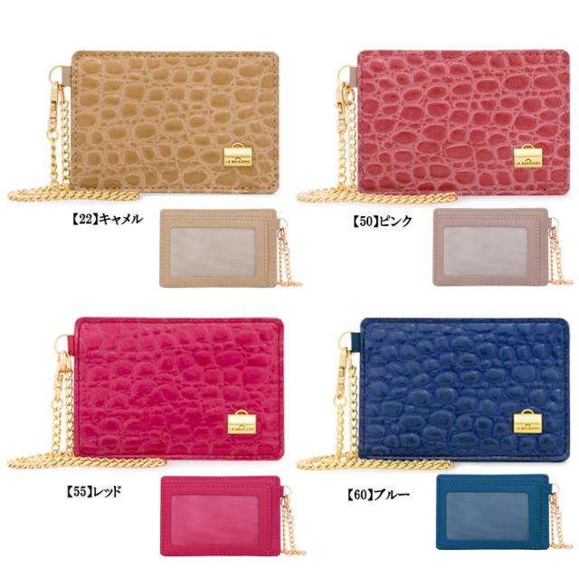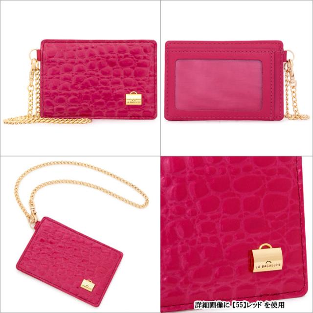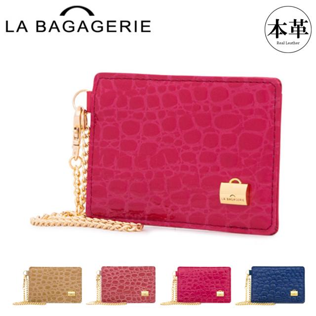 【レビュー投稿で+5%還元】ラバガジェリー LA BAGAGERIE パスケース B42-92-01 クロコ型押しエナメル レディース 本革 レザー カードケース 定期入れ ICホルダー
