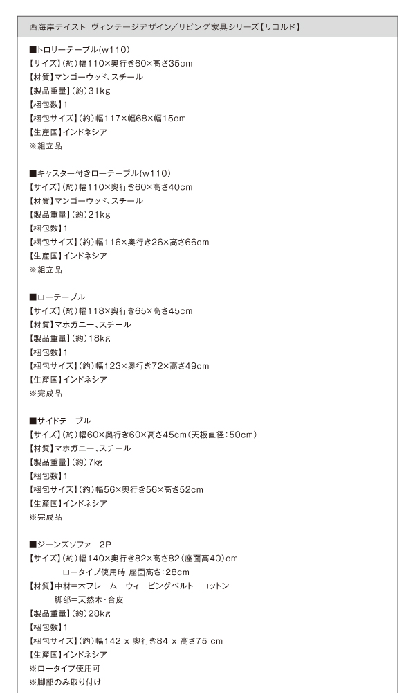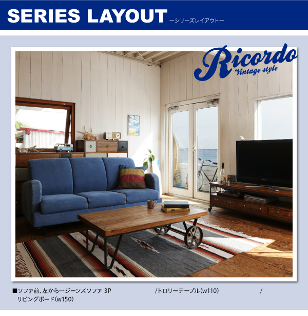 西海岸テイストヴィンテージデザインリビング家具シリーズ〔Ricordo〕リコルド ジーンズソファ 2人掛け(2P)のみ単品販売 【北海道・沖縄・離島配送不可】