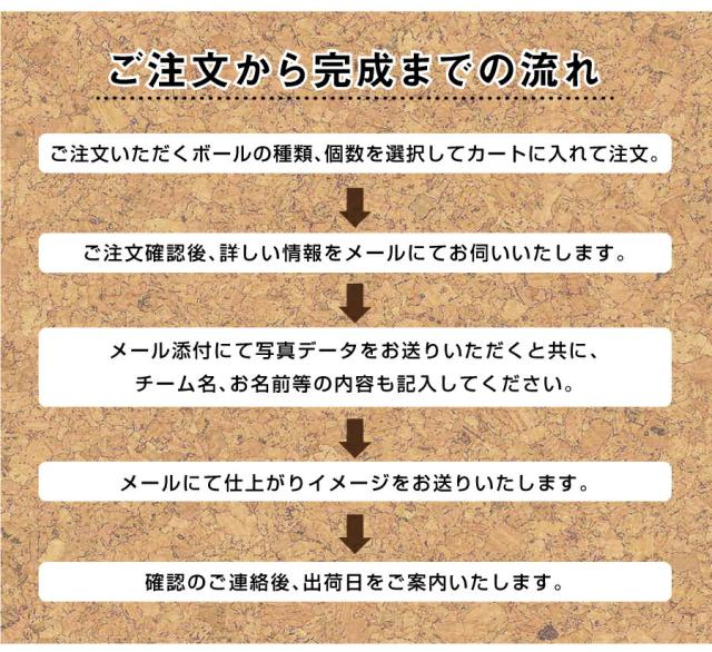 1. まずはご希望の数量をカートに入れてご注文。 ※5個以上でデザイン作成料が無料です。 2. ご注文確認後、詳しい情報をメールにてやり取り。 3. 当店より送信されるイメージをご確認後、ご返信。 以上の流れでかんたんに作成可能です。 お客さまからは「スムーズにやり取りが出来た」とのお声をいただいています♪