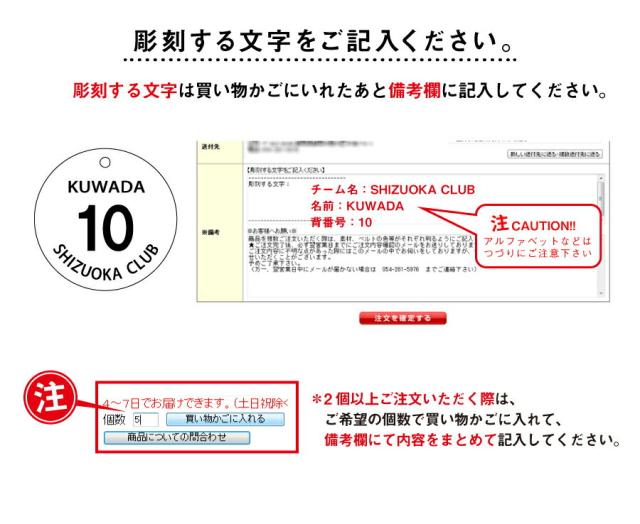買い物かごに商品を入れた後、選択肢より色・柄等オプションをお選びください。彫刻ご希望文字などは、「その他要望」欄にご記入ください。