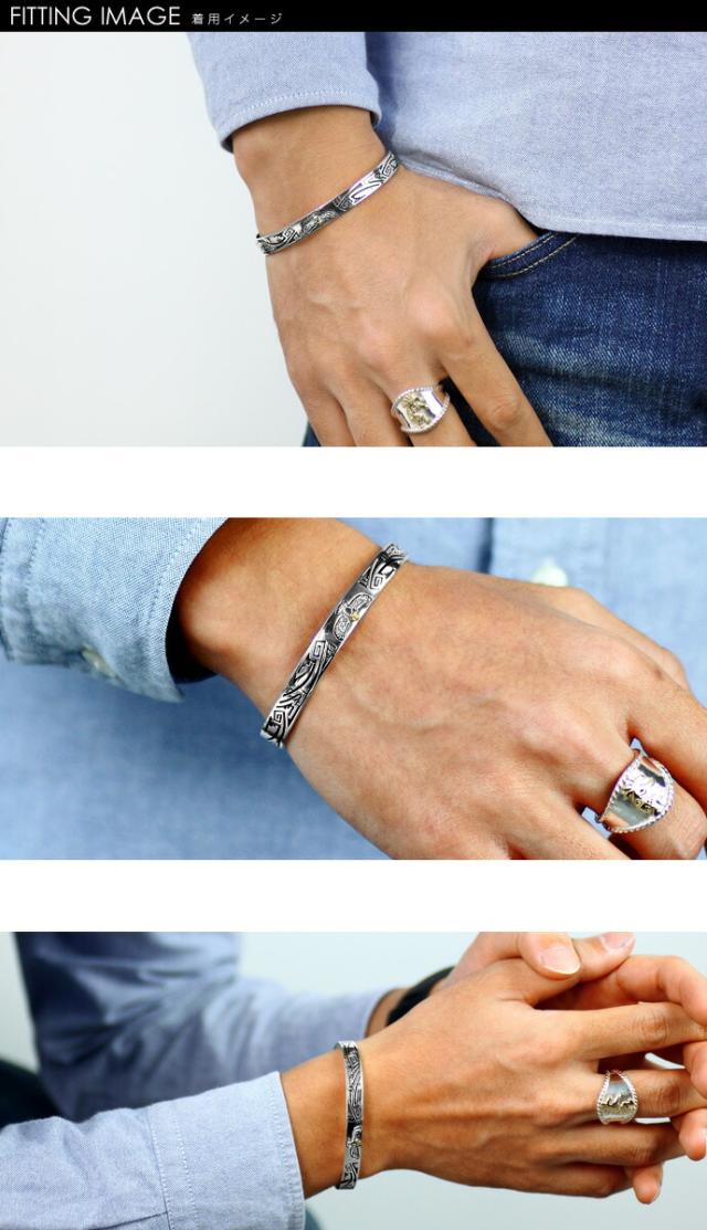 中央にイーグル、サイドにはココペリが彫られたネイティブ系バングル。モチーフがより引き立つようにいぶしが施されています。バングルのデザインはシンプルな平打ちになっており、幅7mmと着けやすいサイズ感。ストーンブレスなどと重ねづけもオススメです。