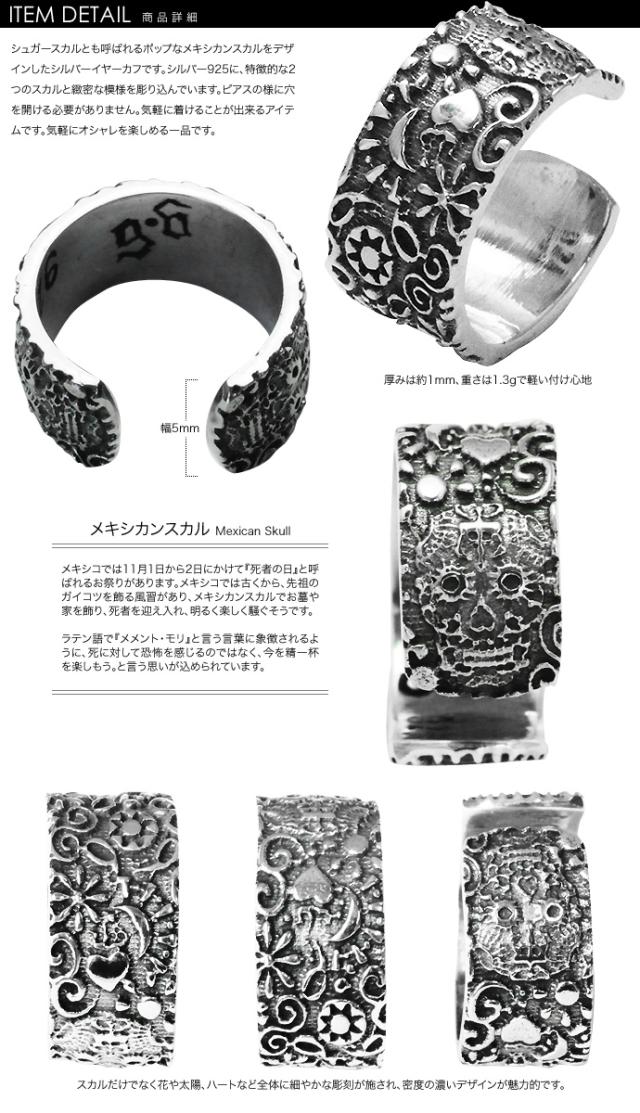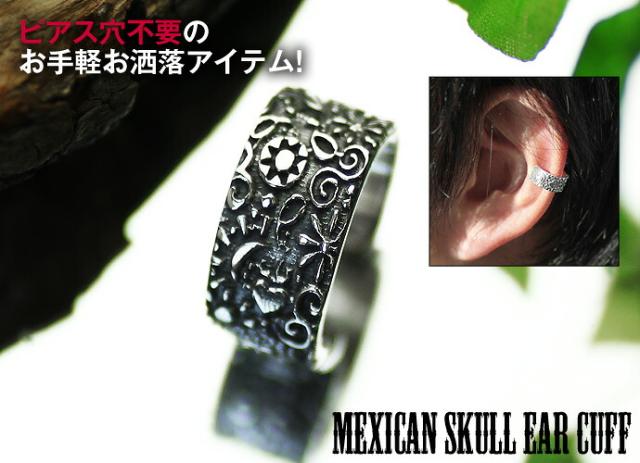 在庫限り ピアス穴不要 メキシカンスカルイヤーカフ メンズ シルバー925 アクセサリー シルバーピアス 片耳用 (1個売り)
