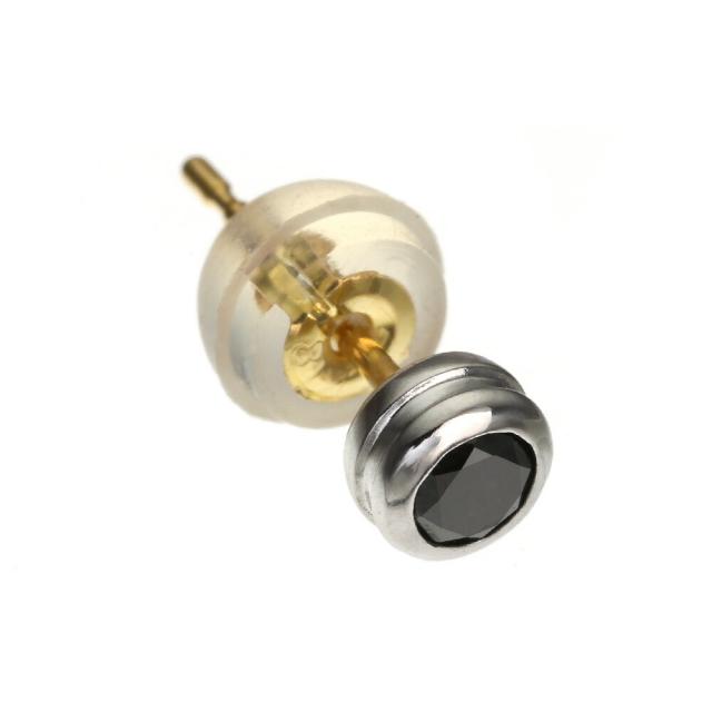 | サイズ | 0.1カラットブラックダイヤモンド(直径:約3mm)、ピアス 直径:約4mm、高さ:約2.8mm、ポスト20ゲージ(0.7mm)長さ9.6mm、重量0.3g |