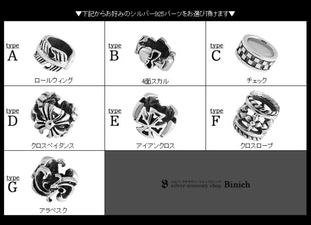 ■パーツの種類:A.ロールウイング B.4面スカル C.チェック D.クロスペイタンス E.アイアンクロス F.クロスロープ G.アラベスク