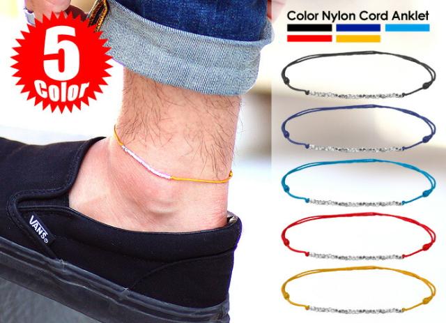 カラーナイロンコードアンクレット アンクレット カラー 細め 重ね付け メンズ シルバー925 アクセサリー