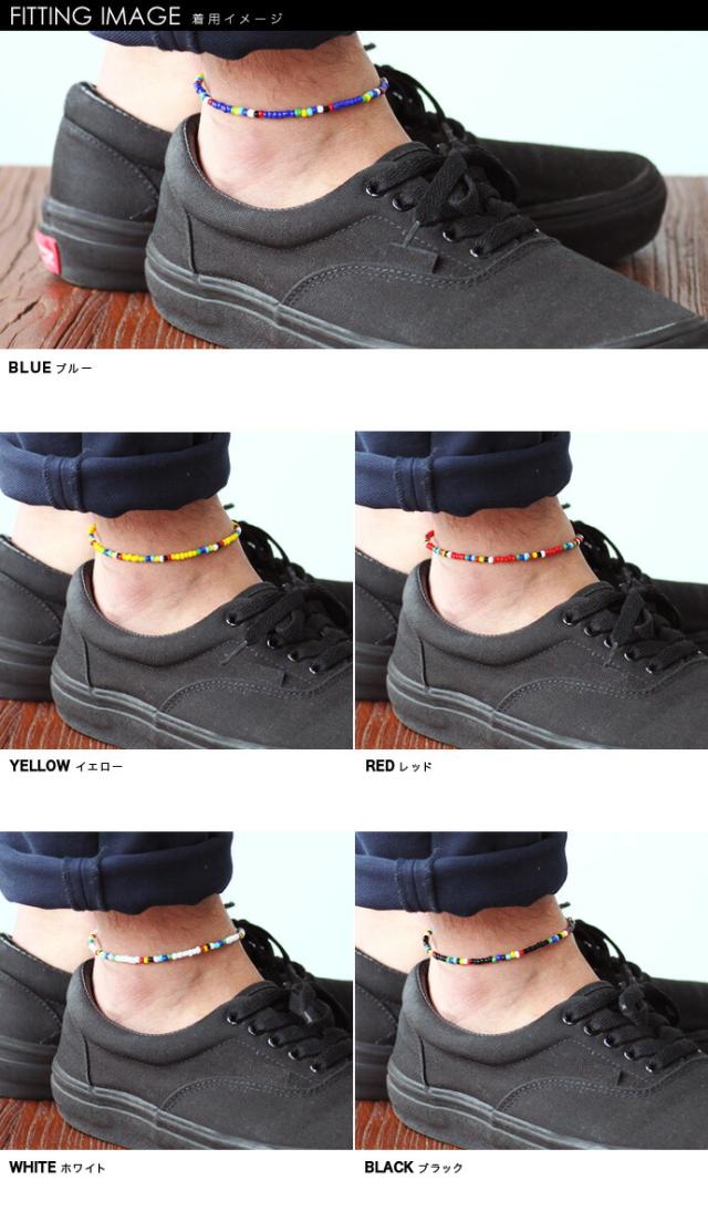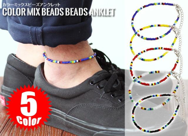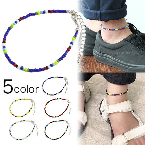 カラーミックスビーズアンクレット アンクレット カラー 細め 重ね付け メンズ