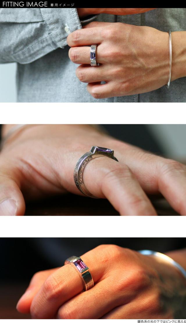 アレキサンドライトリング メンズ 指輪 シルバー925 紫色 パープル 幅広 ごつめ 太め 彫刻 模様 四角 スクエア 送料無料 おしゃれ 人気メンズアクセサリー 20代 30代 40代 50代 bar-1419