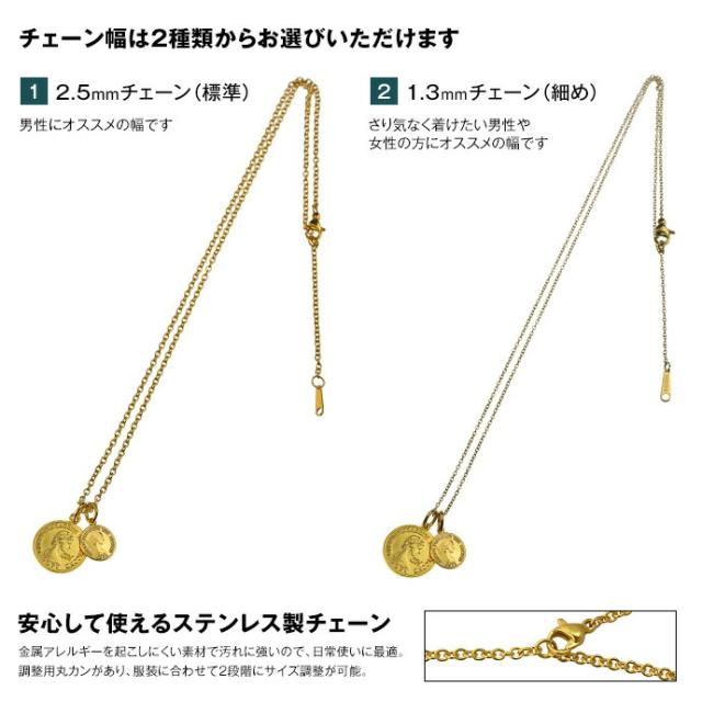 ゴールドコインネックレス メンズ ブランド ステンレスチェーンネックレスセット レディース メダル 硬貨 真鍮 Binich 送料無料 男性用メンズアクセサリー 20代 30代 40代 50代 shp-0107