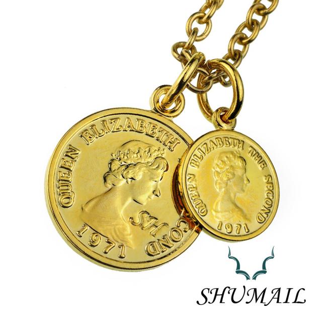 ■商品名:SHUMAIL(シュメール) ネックレス メンズ ダブル ゴールド エリザベス コイン ペンダント シンプル ブランド ステンレススチール316L PVD アクセサリー ブラス 真鍮