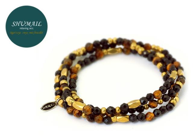 ■商品名:SHUMAIL(シュメール) タイガーアイオニキスミックスブレスレット ブランド 真鍮 アクセサリー ブレスレット メンズ 天然石