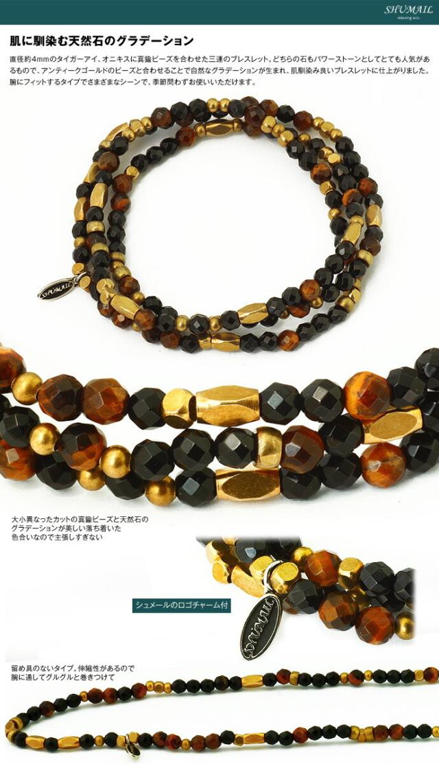 ブレスレット ブランド SHUMAIL 公式 メンズ 天然石 オニキス タイガーアイ カッティング パワーストーン 数珠 アンティーク ゴールド 大人 シンプル シュメール Binich 20代 30代 40代 50代 プレゼント 男性用 アクセサリー shb-0110