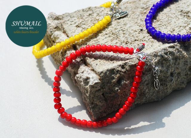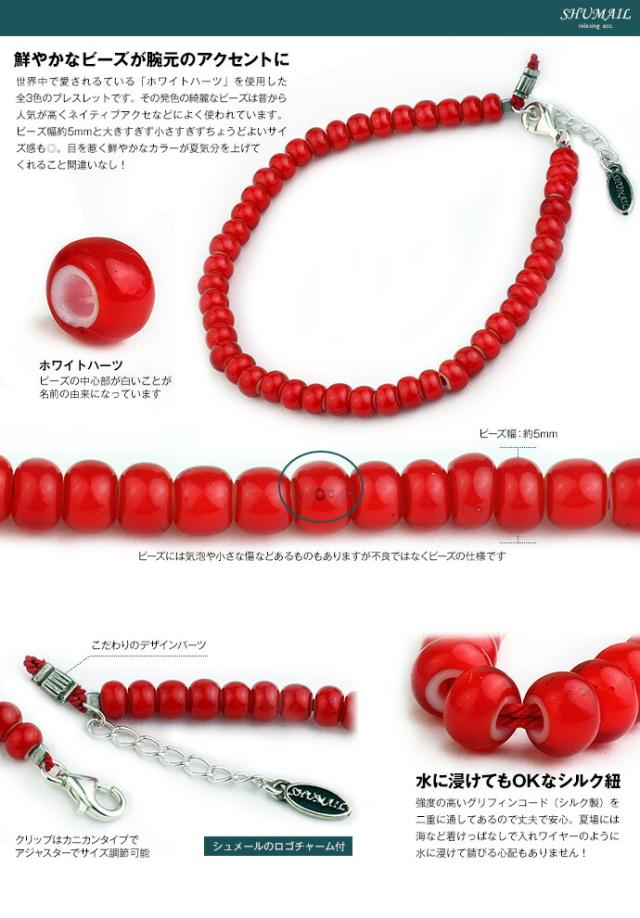 ブレスレット ブランド SHUMAIL 公式 メンズ レディース ホワイトハーツ ビーズブレスレット シルバー925 レッド ブルー イエロー アンティーク シュメール Binich 20代 30代 40代 50代 プレゼント 男性用 アクセサリー shb-0114