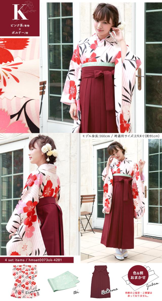 袴セット レディース 卒業式 小学生 大学生 袴 セット 袴4点セット(二尺袖着物/無地袴/襦袢/下帯) はかまセット 着物セット 成人式 謝恩会 女性 仕立て上がり 購入