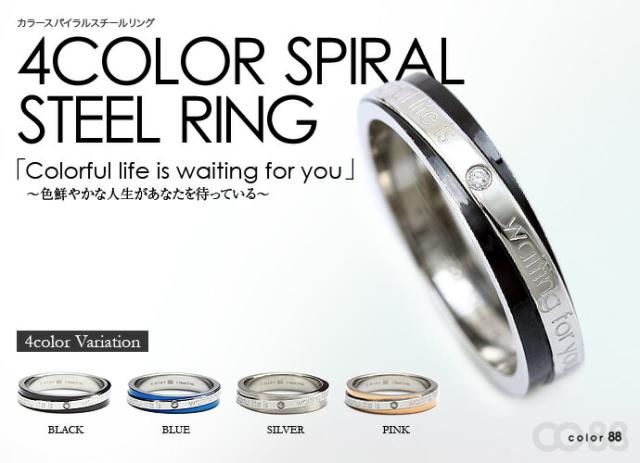 ■商品名:color88 カラースパイラルスチールリング メンズ レディース 指輪 メンズ レディース (ブラック・シルバー・ブルー・ピンクゴールド) ステンレスリング