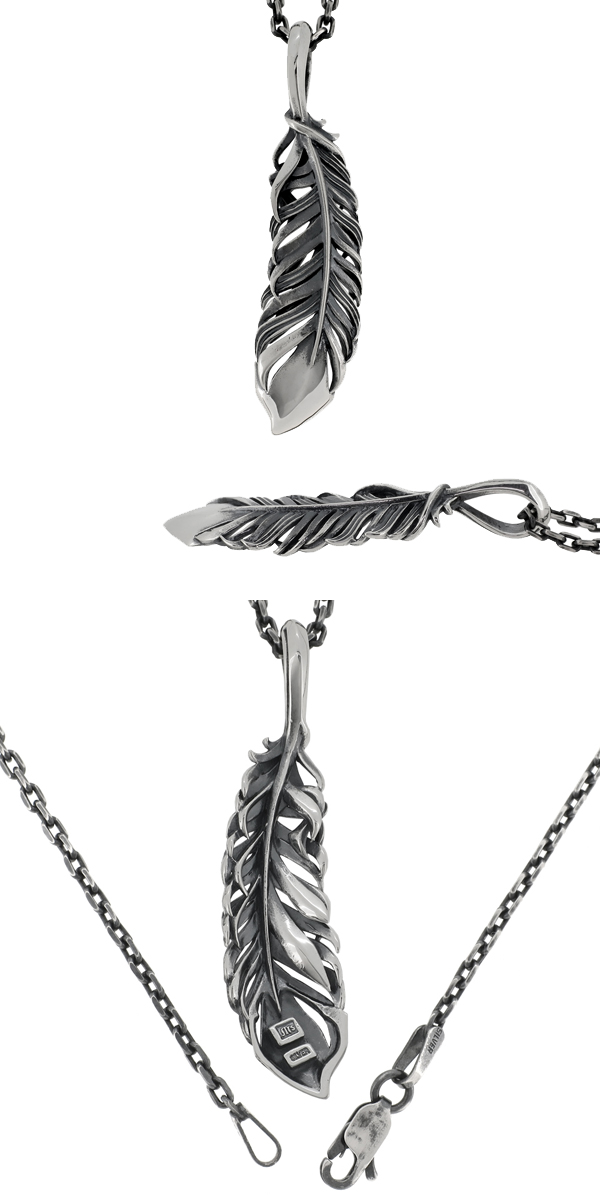 【エムズコレクション】ソリッド フェザー シルバーペンダントトップ ペンダントヘッド(チェーンなし)/メンズ ネックレス ブランド msコレクション