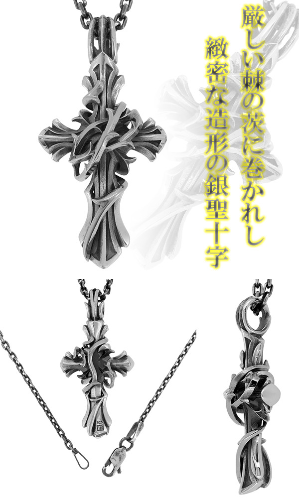 ハードデザインのクロスと、そこへ幾重にも絡まってゆく茨の縛めが印象的です。