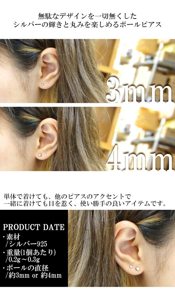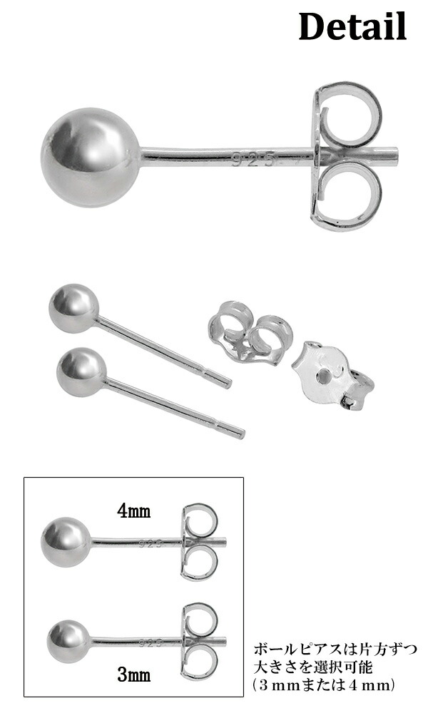 ボールピアスは1つずつ、大きさをお選びいただけます(3mmまたは4mm)