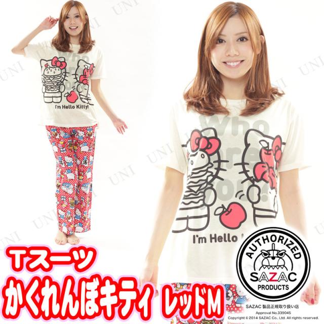 サンリオ,キャラクター,ファッション,女性用,大人用,ルームウェア,寝巻き,寝間着,sazac_roomwear,かくれんぼキティTスーツ レッド M,25979skey 4560419560480