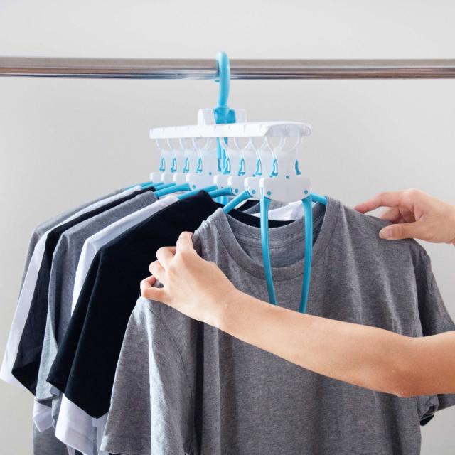 Tシャツ・Yシャツを楽に取り込めるワンタッチ8連ハンガー