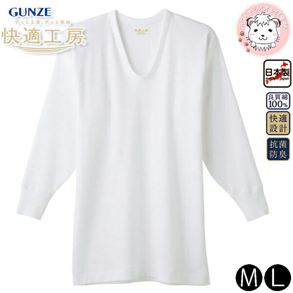 GUNZE グンゼ ぐんぜ 快適工房 かいてきこうぼう メンズ 紳士 男性 肌着 下着 インナー U首 Uネック 長袖 長そで シャツ