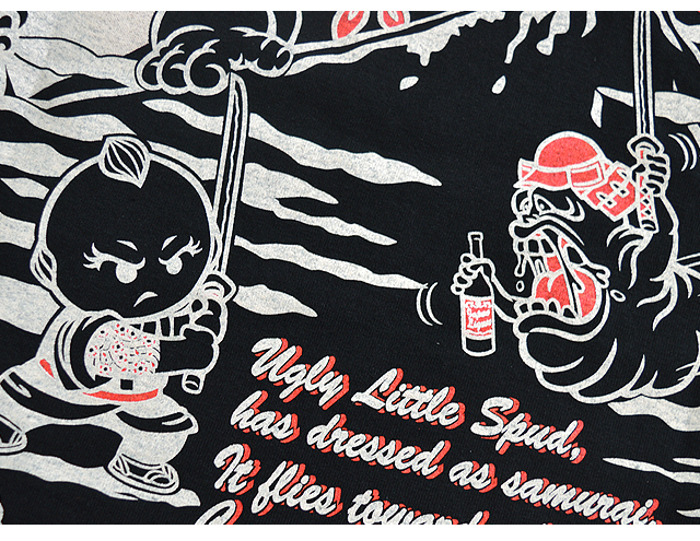 バックには、侍に扮したCHIGIRIベイビーが、果敢に闘う姿をデザインしました!