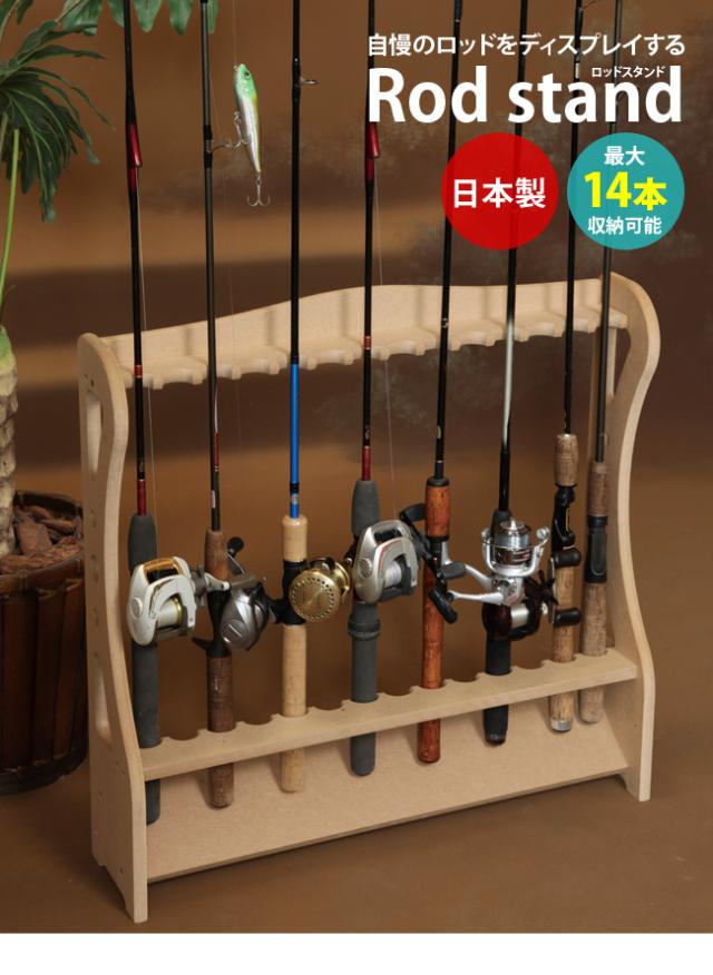 ロッドスタンド 14本用(釣り竿収納 木製 MDF合板 竿立て 組み立て式 スタンド 釣り ディスプレイ 釣り竿 フライロッド ロッドホルダー 釣竿 収納 コレクション 整理 自宅 部屋 釣り竿立て 収納ラック 釣り具 釣り用品 立て掛け 保管) 即納