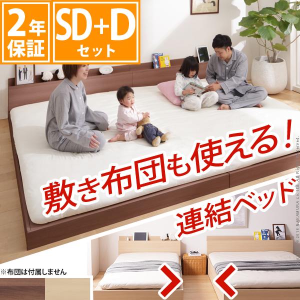 【送料無料】家族揃って布団で寝られる連結ローベッド 〔ファミーユ フラット〕 ベッドフレームのみセミダブル+ダブル同色2台セット