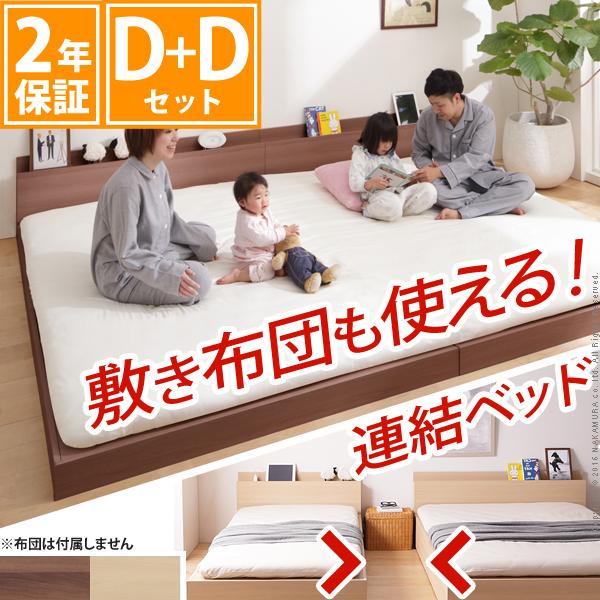 【送料無料】家族揃って布団で寝られる連結ローベッド 〔ファミーユ フラット〕 ベッドフレームのみダブル+ダブル同色2台セット