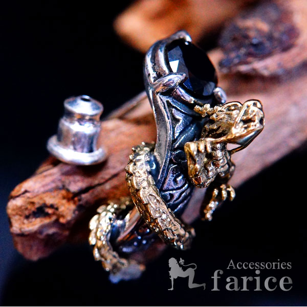 和柄 昇龍(ライジング・ドラゴン) 巻き付く金龍デザイン ブラックストーン装飾 シルバー925 メンズ スタッドピアス【片耳用】