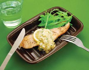 | の底面が調理をしたときに出てくる油や水分をプレートの隅へと流し、おいしくヘルシーに仕上げます。だから、野菜はシャキシャキ、焼き魚はカリっとふっくら仕上がります。 |